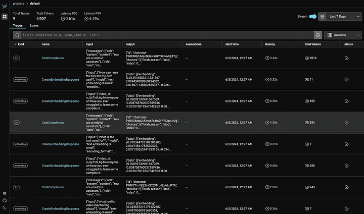 Start the observability component to monitor your LLM’s performance. When you run the observer, it will provide you a localhost URL, that redirects to a dashboard the helps you track things like response time, token usage and the kind of api call (embedding, llm, etc).